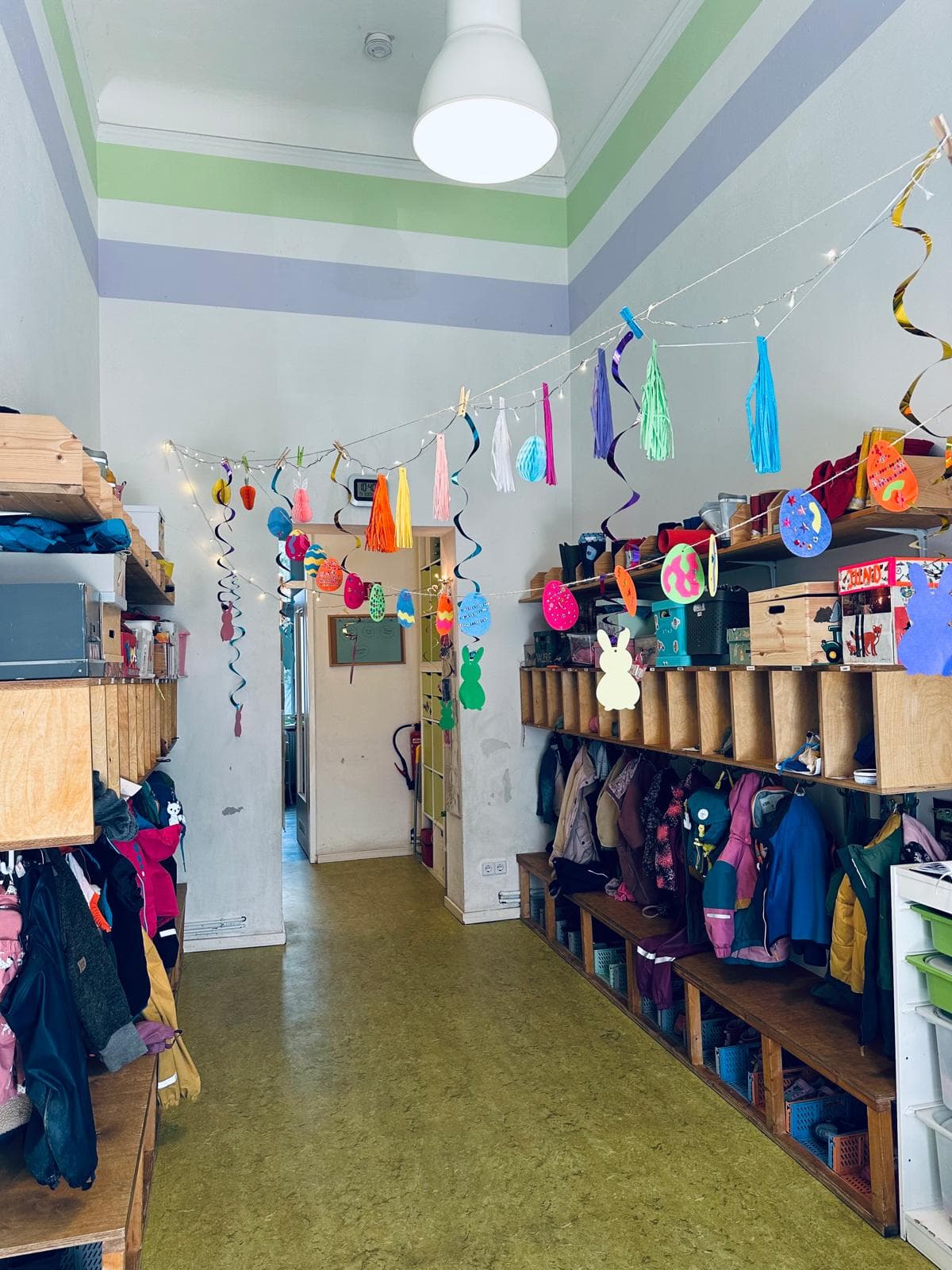 Unser Kinderladen befindet sich im Herzen von Pankow, in der Breite Straße Ecke Eintrachtstraße. Die 140 m² großen Räume liegen im Erdgeschoss eines Wohnhauses und sind in drei große Funktionsräume, eine Garderobe, eine Küche und ein Bad aufgeteilt.