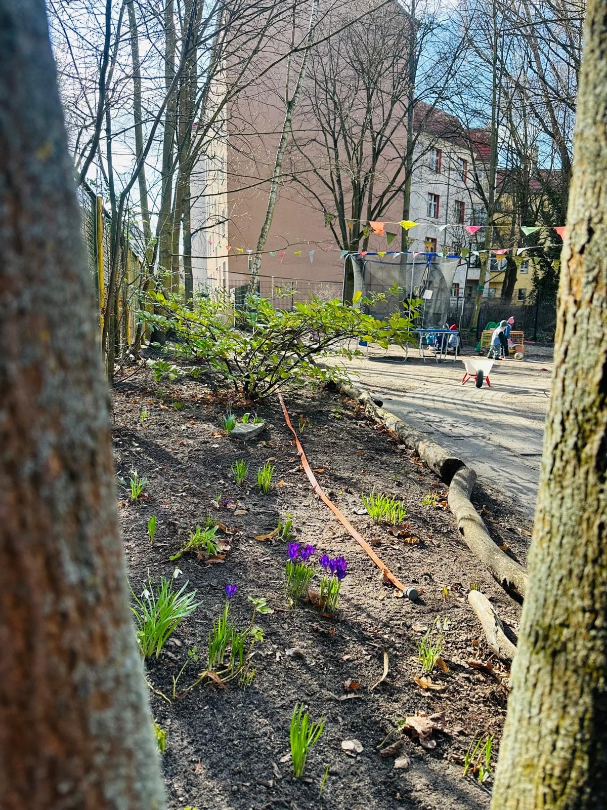 Wir gehen raus — in unseren Garten, auf umliegende Spielplätze oder in Parks.